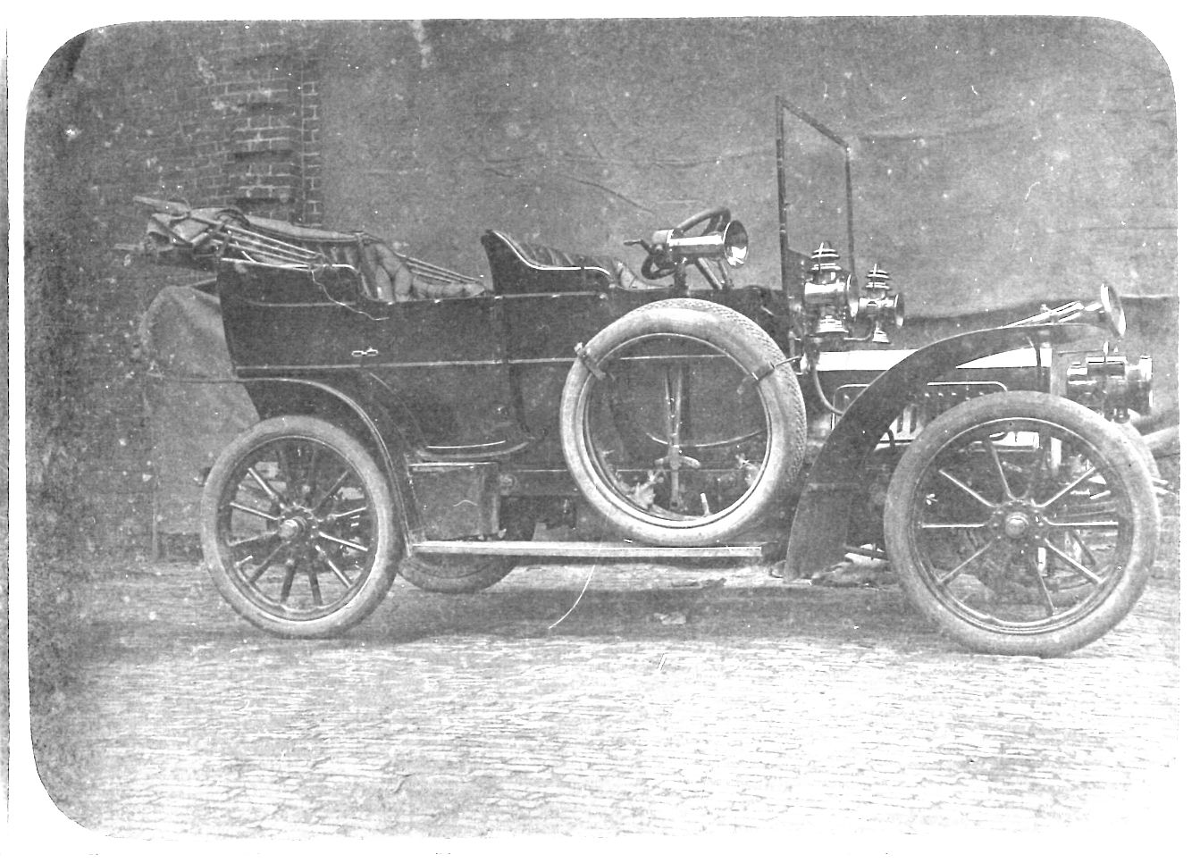 Photo Van Bergen family archive (Heiligerlee): Peugeot 135 parked in one of the factories. The back of the photograph states that the car was bought in 1912.